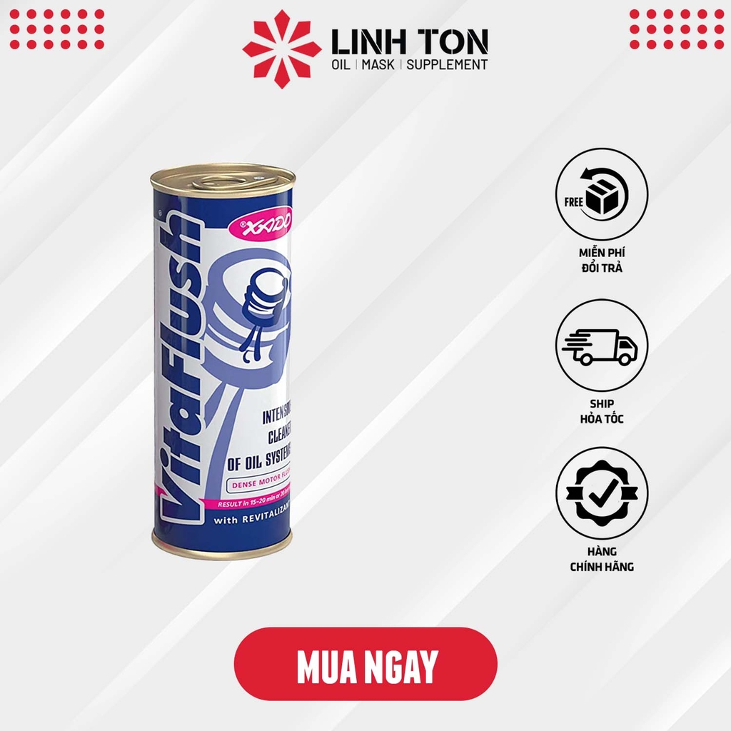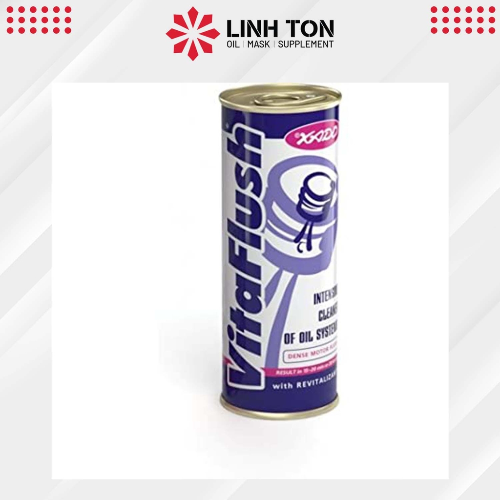 - XADO VitaFlush có khả năng thay thế các sản phẩm tẩy rửa dự phòng và chất bảo vệ chống mài, và có thể sử dụng cho mọi loại dầu khác nhau, bao gồm dầu gốc khoáng, bán tổng hợp và tổng hợp hoàn toàn, khi bạn thay nhớt mới.