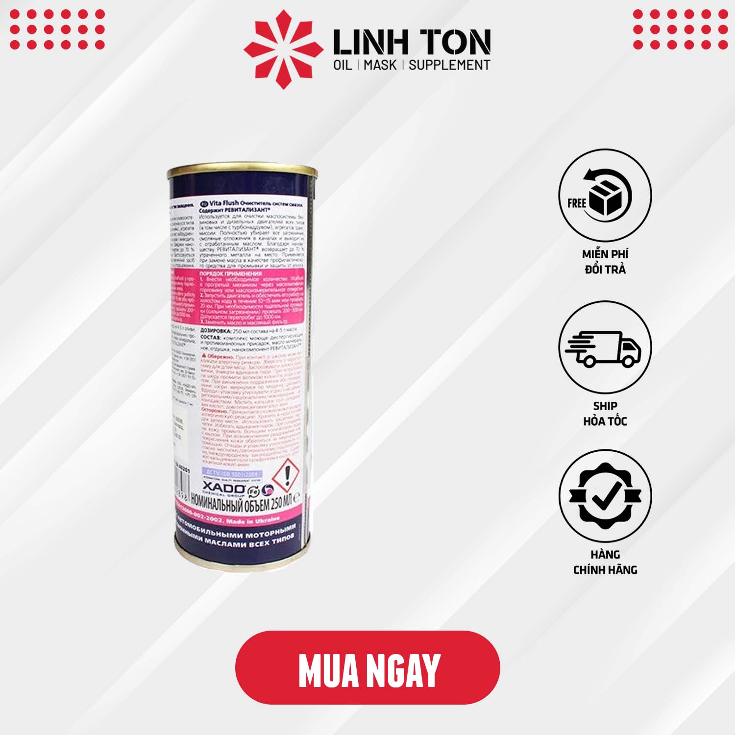 - Xado Vitaflush 250ml khôi phục khả năng hoạt động của piston và bạc đạn.