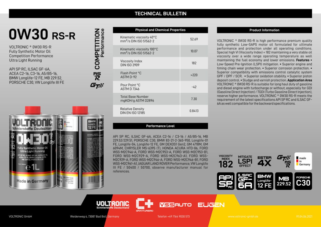 VOLTRONIC 0W30 RS-R – Dầu Nhớt Cao Cấp Đến Từ Đức.