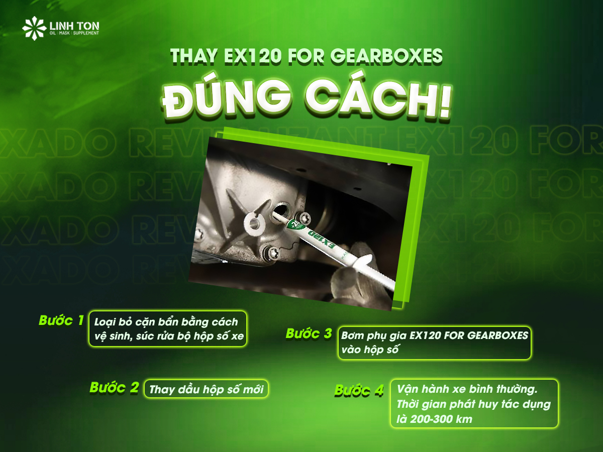 Bước 3: Bơm phụ gia EX120 vào hộp số theo liều lượng được đề xuất.
