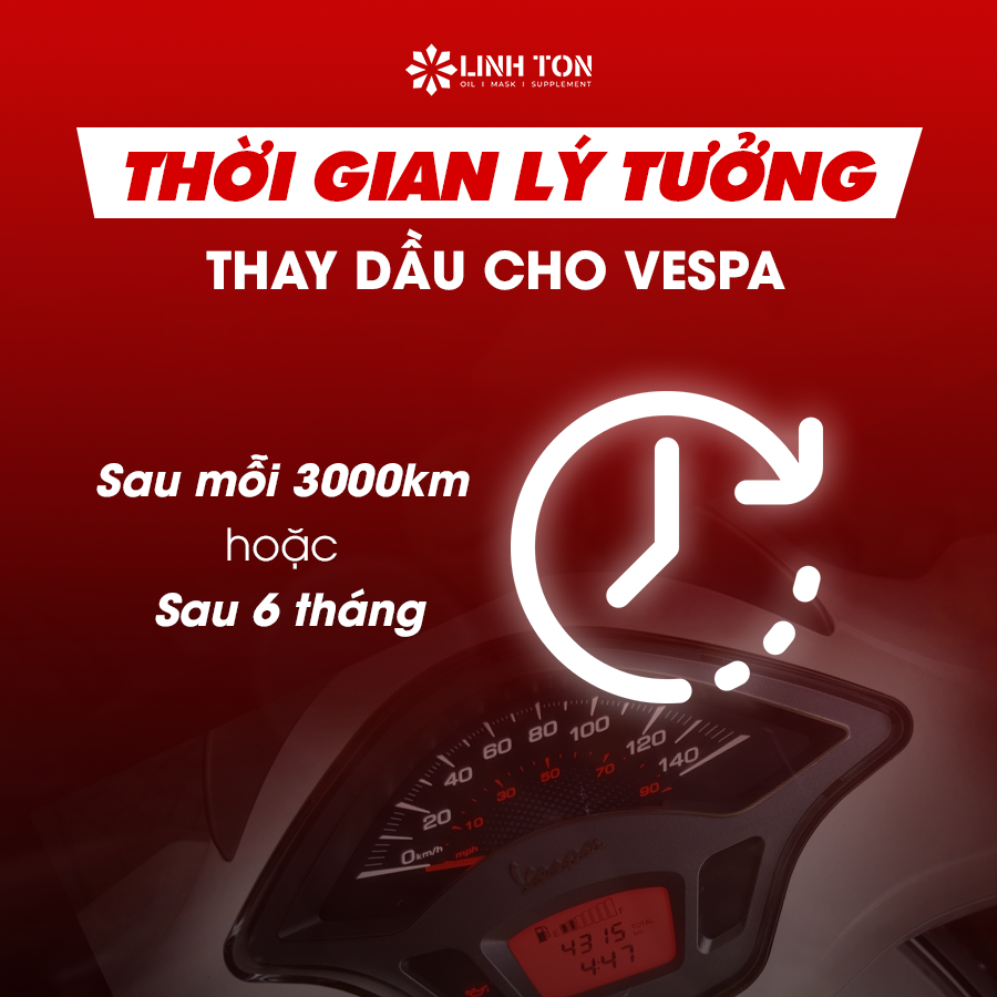 - Thời gian thay dầu cho xe Vespa phụ thuộc vào nhiều yếu tố như loại xe, loại dầu, điều kiện sử dụng và bảo quản. Tuy nhiên, theo khuyến cáo của nhà sản xuất Piaggio, bạn nên thay dầu cho xe Vespa sau mỗi 3000 km hoặc 6 tháng sử dụng. Bạn cũng nên kiểm tra mức dầu thường xuyên để bổ sung hoặc thay thế khi cần thiết.