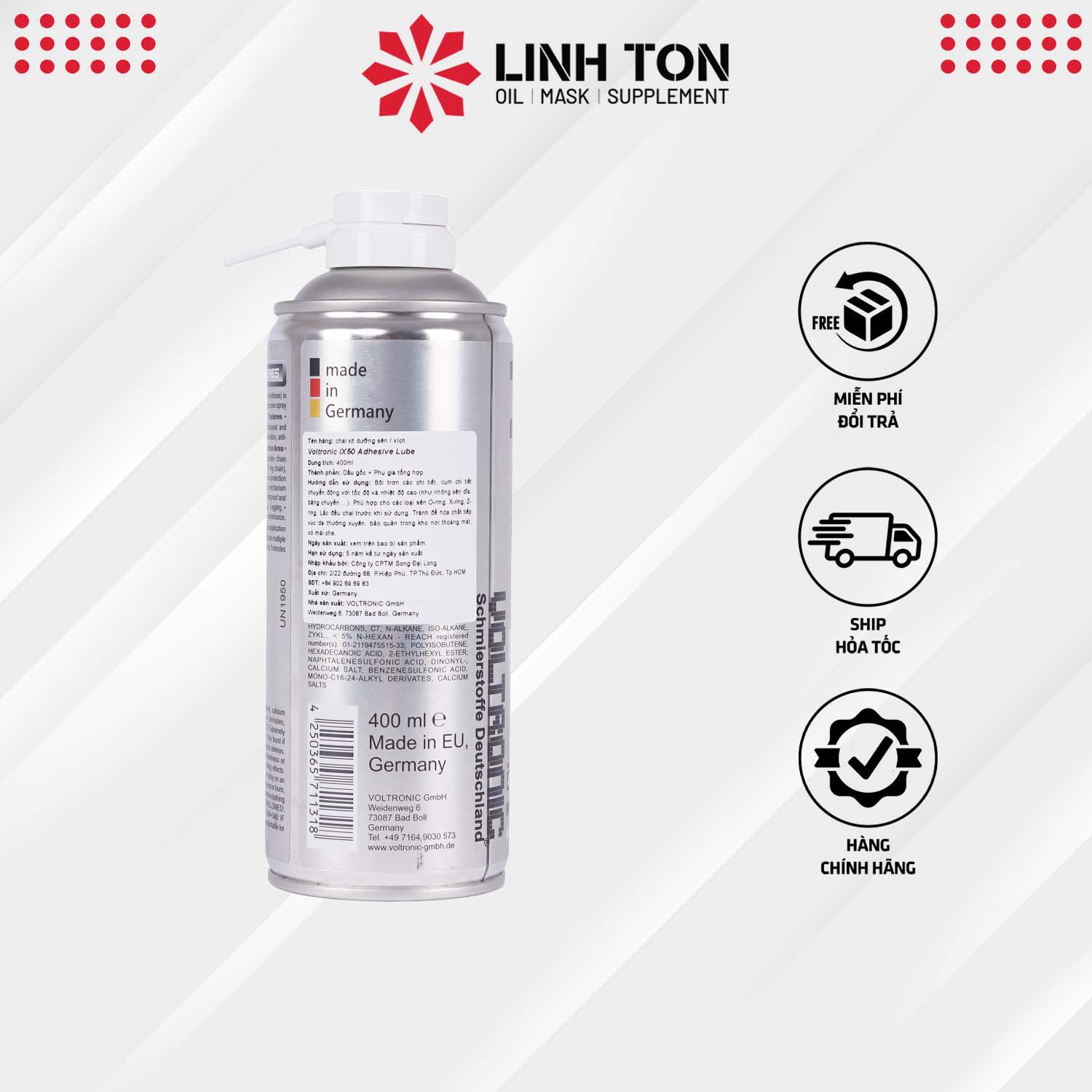 Voltronic IX50 là sản phẩm phụ trợ đến từ Đức, với tác dụng bôi trơn các chi tiết, cụm chi tiết chuyển động với tốc độ cao và nhiệt độ cao.