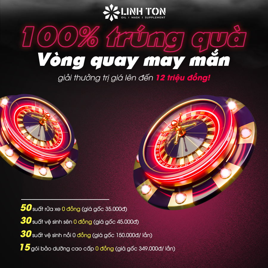 Qúy khách được tham gia Mini game “Có quay có trúng - 100% ” mừng sinh nhật 01 tuổi Linh Tôn Store bao gồm các phần quà trị giá lên đến x.000.000đ như: