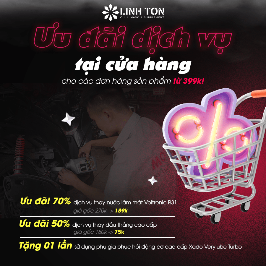 Khi quý khách mua các sản phẩm dầu nhớt tại cửa hàng Linh Ton Store với hoá đơn từ 399k, quý khách được Ưu đãi như sau: