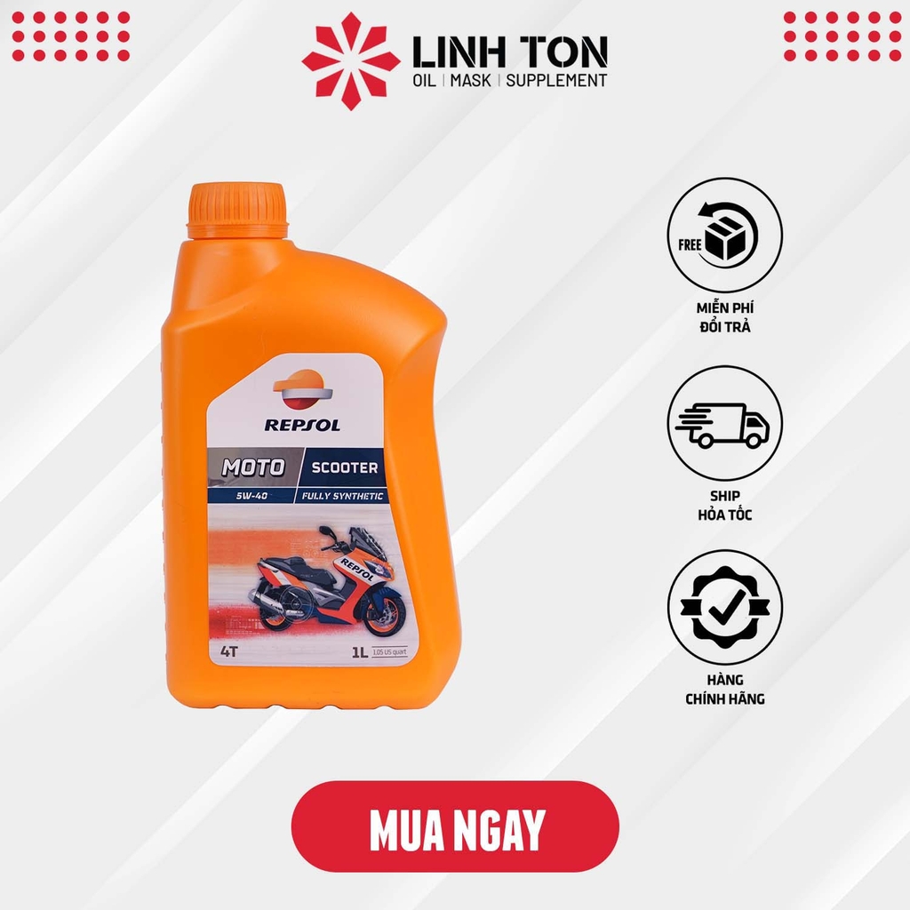- Nhớt Repsol Scooter 5W40 là một sản phẩm chất lượng cao, với khả năng chống oxy hóa và chịu nhiệt tốt, đồng thời đảm bảo độ nhớt ổn định và khả năng bôi trơn hiệu quả trong khoảng biến thiên nhiệt độ rộng.