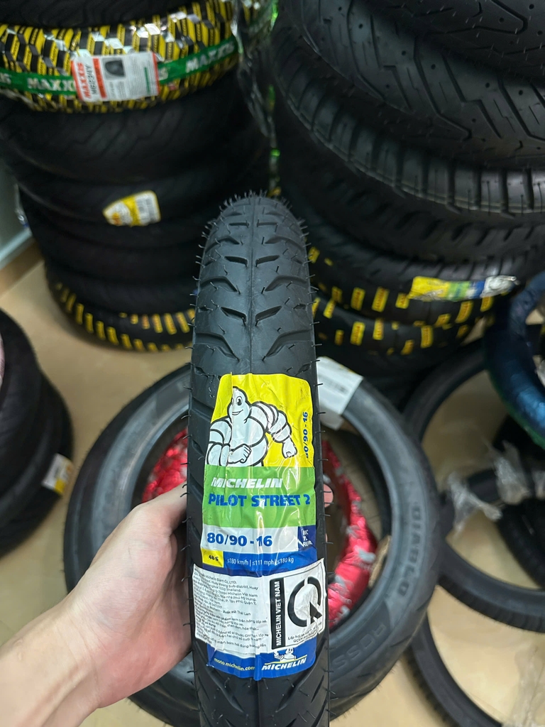 - Vỏ Michelin Pilot Street 2 size 80/90-16 gắn được các loại xe: SH Mode, Nouvo... Vỏ Michelin Pilot Street 2 hoàn toàn mới được sản xuất tại Thái Lan.